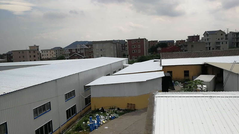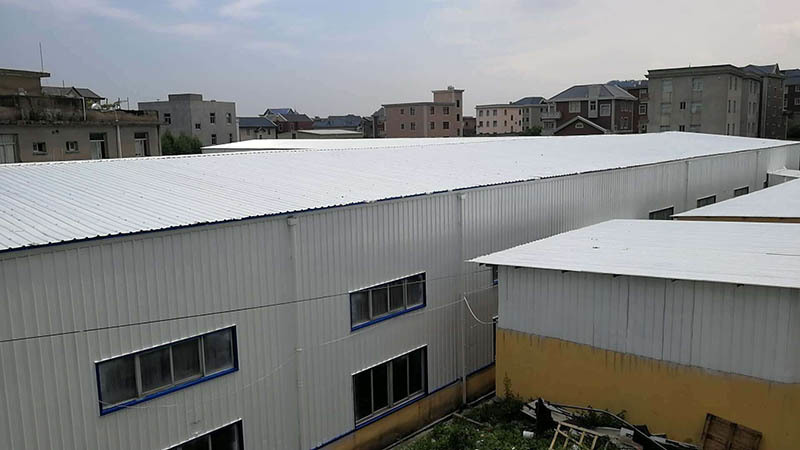 浙江某廠彩鋼瓦隔熱翻新工程施工現(xiàn)場(chǎng)